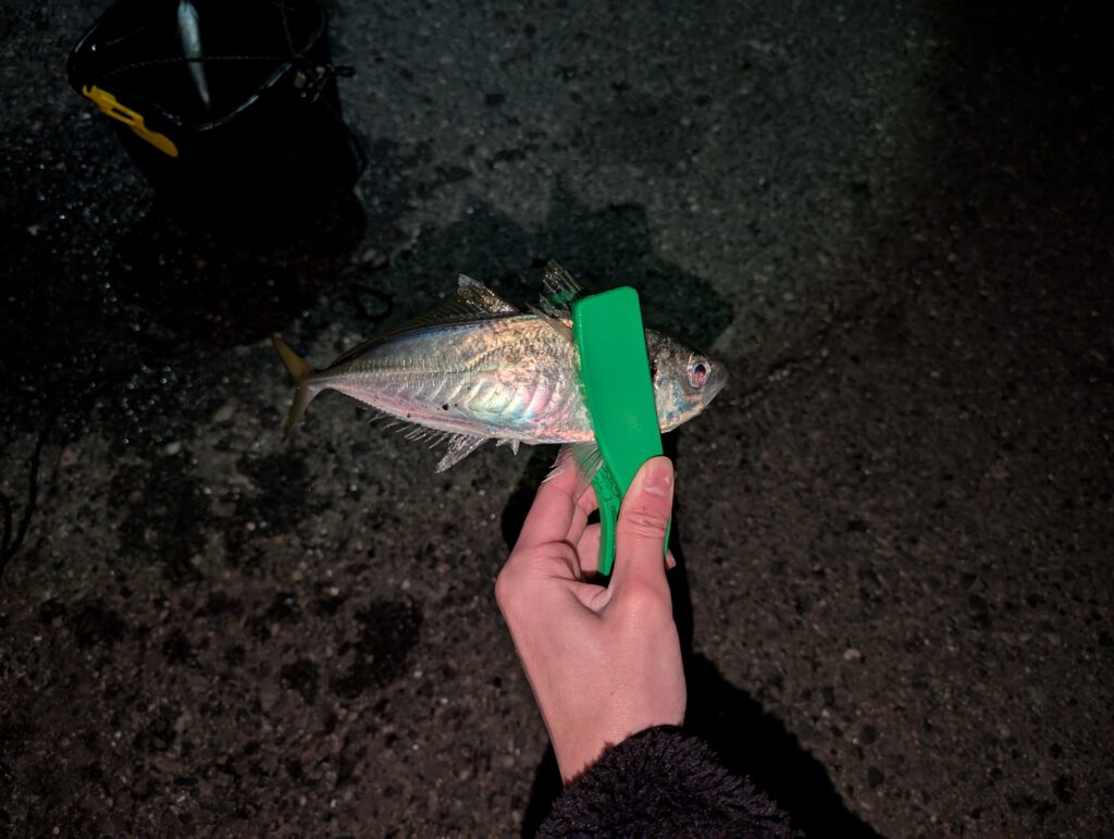 この後も友人が15〜17cm程のアジを2匹追加しました。