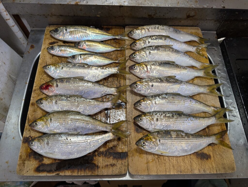 アジが4匹、コノシロが13匹でした。