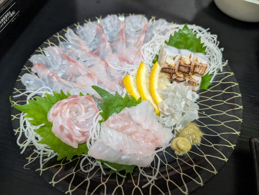 切っていて包丁がベトベトになるくらい脂の乗ったクエで、刺身がめちゃくちゃ美味しかったです、意外なことに鍋で加熱するよりも刺身のほうが美味しい個体でした、珍しいですね〜。