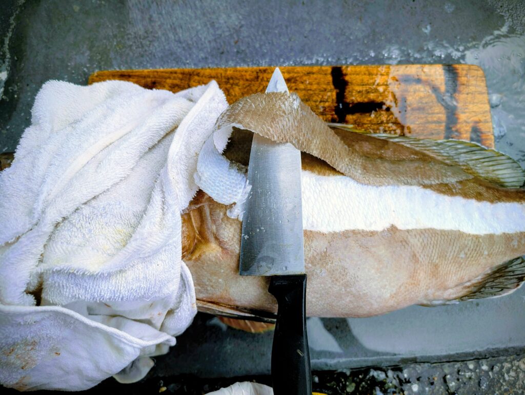 次の日、クエは寝かせるためにしっかりとすきびきをして内臓を処理して氷に沈めておきました!