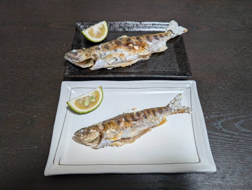 アマゴとヤマメの塩焼き食べ比べの完成〜