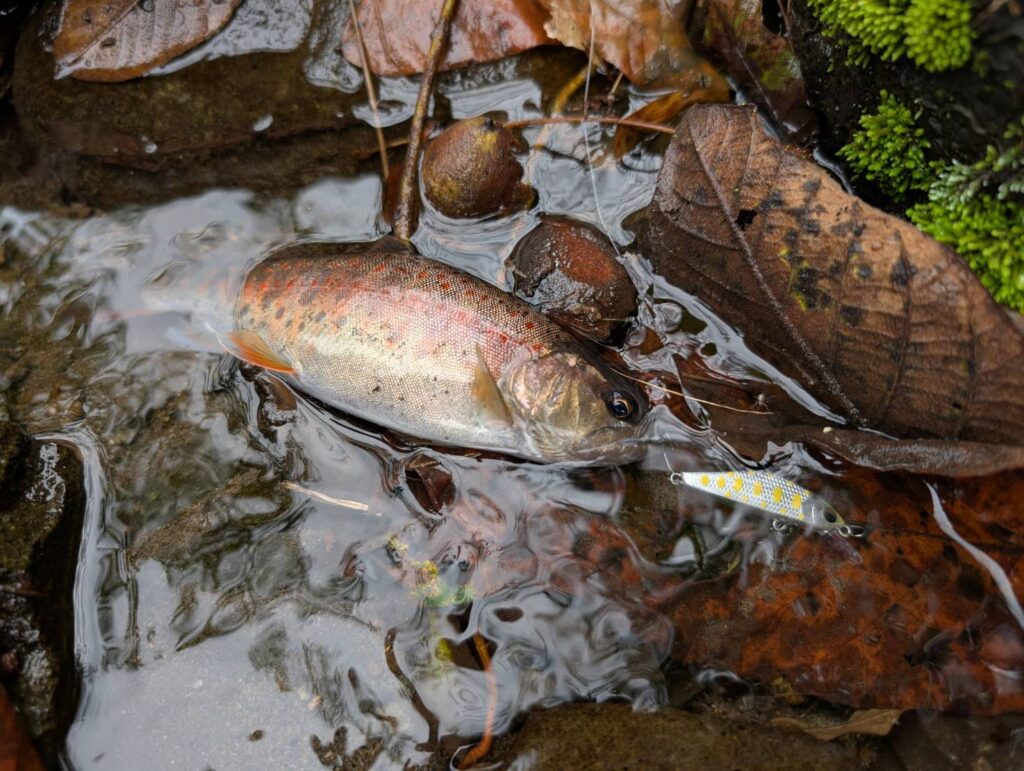 こちらのヒットルアーは DAIWA の Dr.minnow II 42FS チャートヤマメ でした。