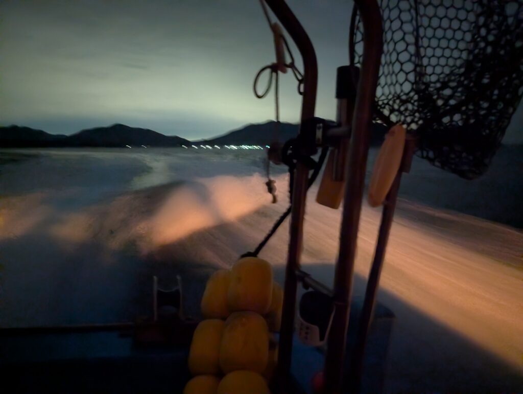 朝5時半過ぎ、薄暗い中出船です。