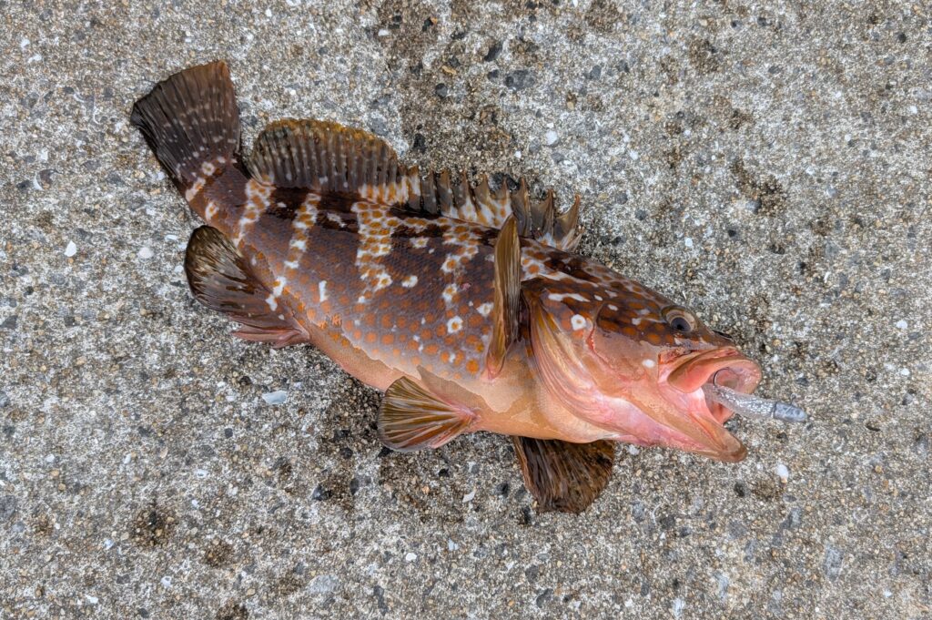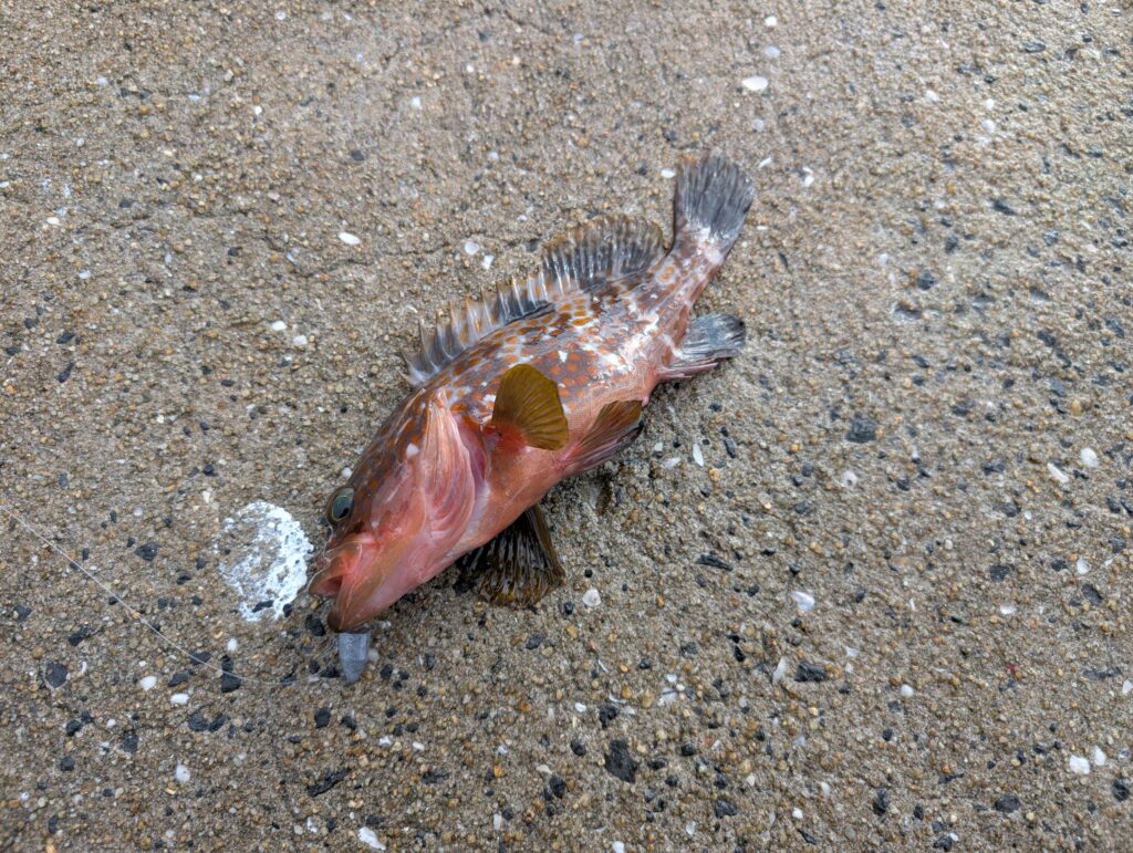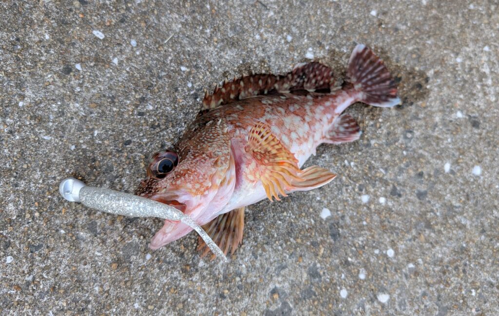 午前10時を過ぎると流石にナブラも起きなくなり、ライトショアジギングではチャンスが無さそうな雰囲気になってしまいました。次の便が午後1時発だったので片付けの時間も考えてお昼前くらいまで釣りをすることに。釣れそうなターゲットということで根魚狙いをしてみることにしました。