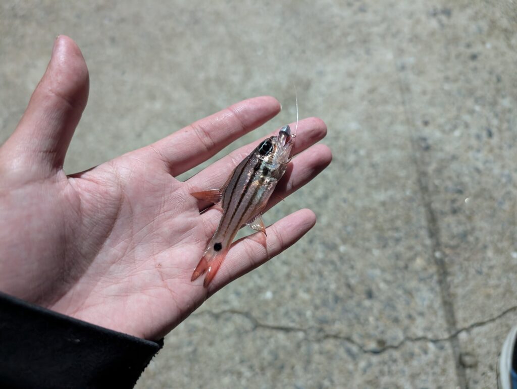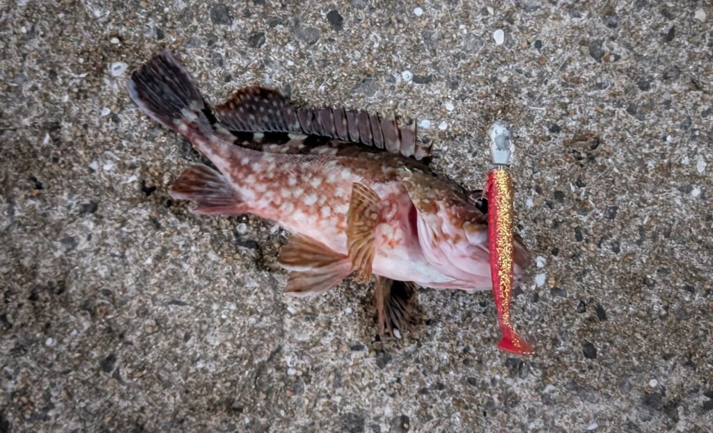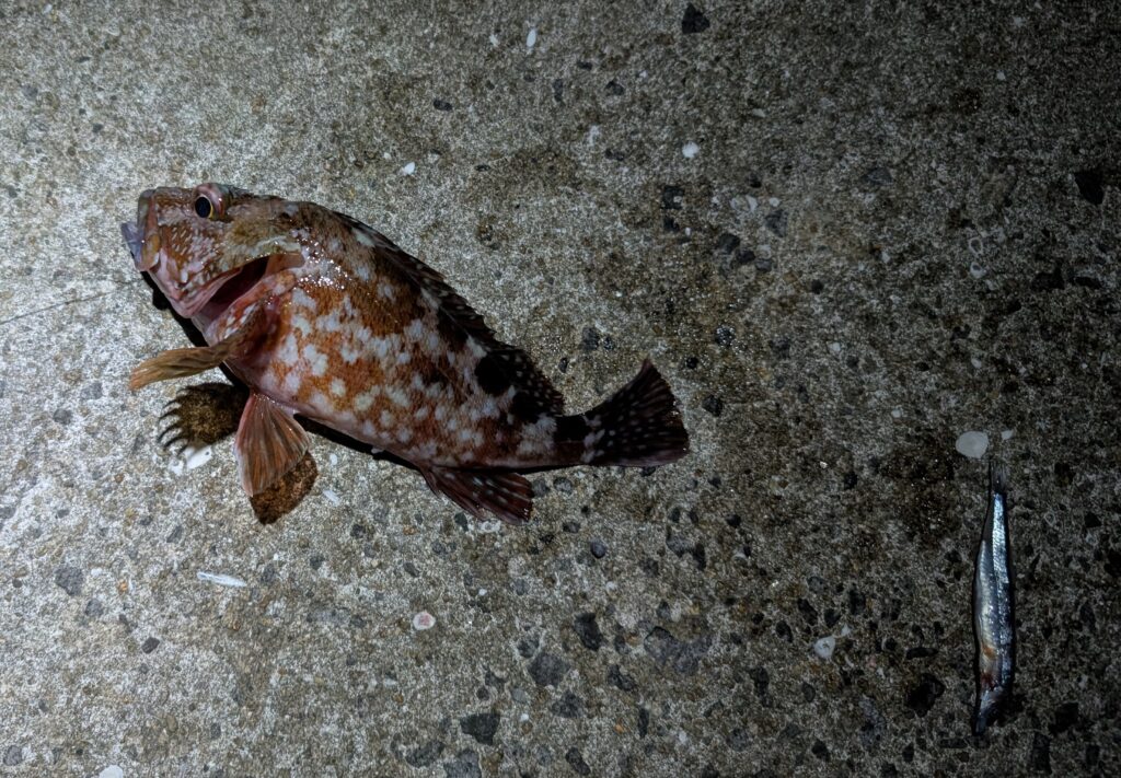 頼みの綱のキビナゴのぶっ込みもほとんどアタリがないか釣れてもカサゴという状況、アジングなどのルアーははほとんどアタリなし、泳がせは餌が釣れず…