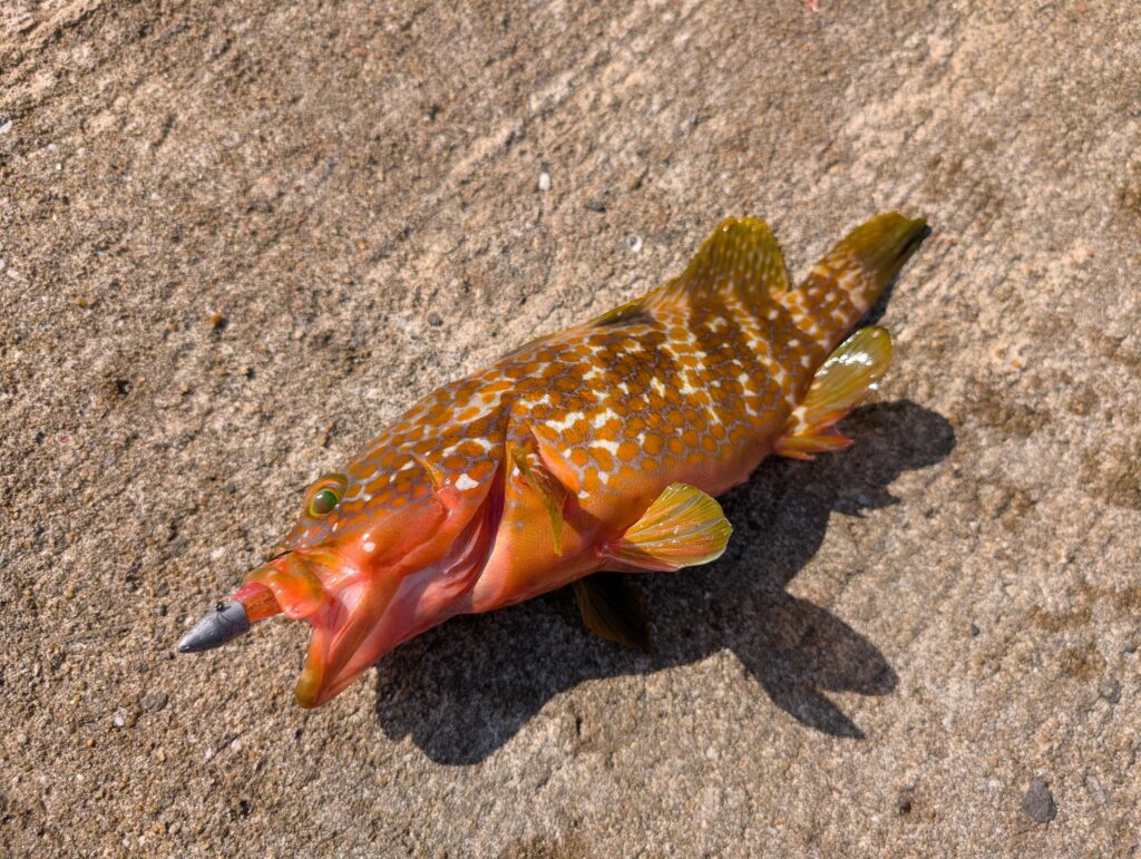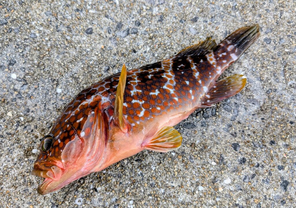 キジハタの28cm、この遠征で自分は初のキープサイズなキジハタでした。