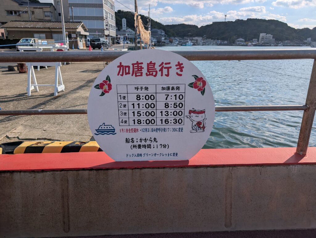 加唐島には唐津市呼子から加唐島汽船「かから丸」に乗り約17分で到着します。