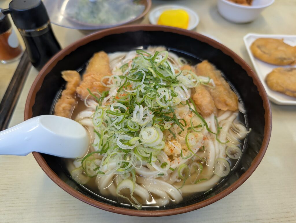 離島では結局カップ麺くらいしかまともなものを食べることができていなかったので、解散前に友人おすすめのうどん屋さん「牧のうどん」さんへ。