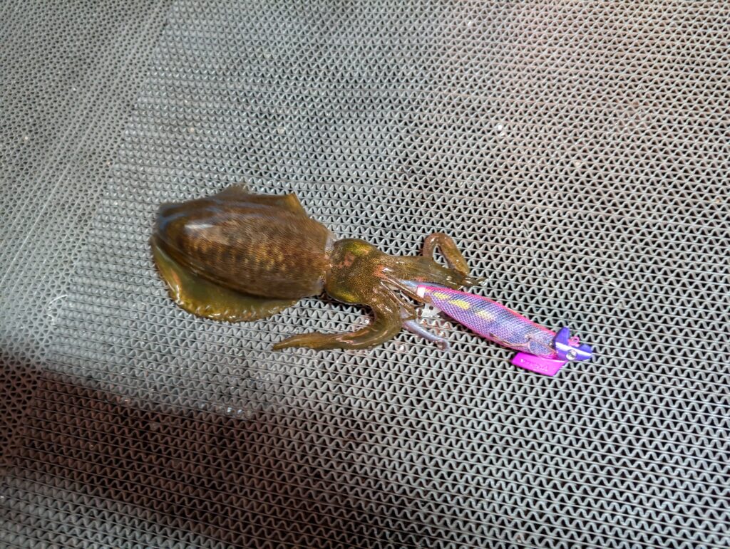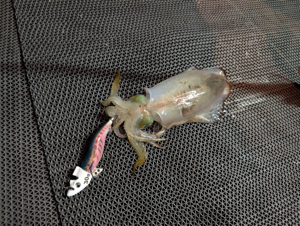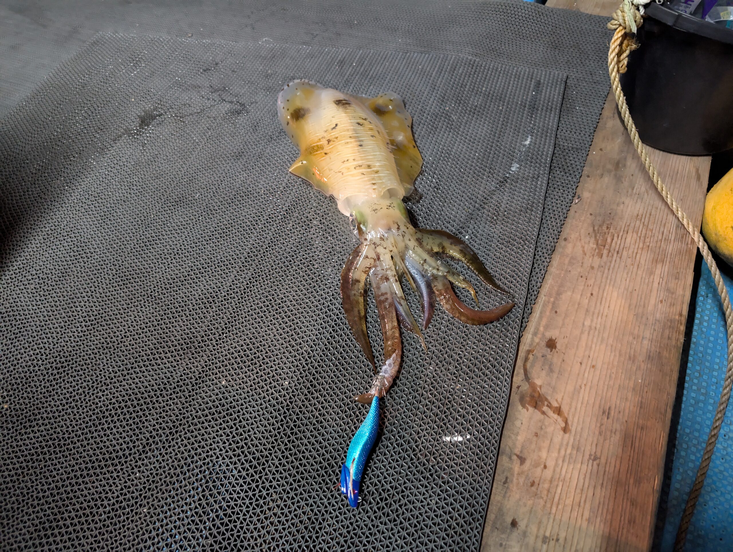 なかなかの引きで上がってきたのは良型のアオリイカ♪