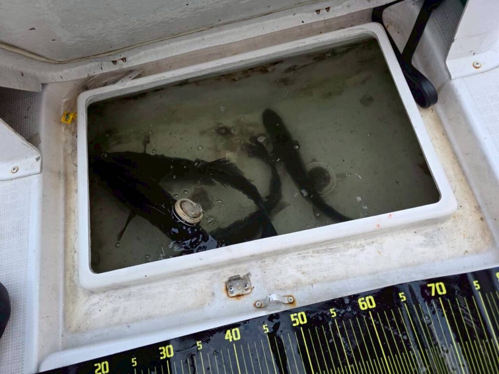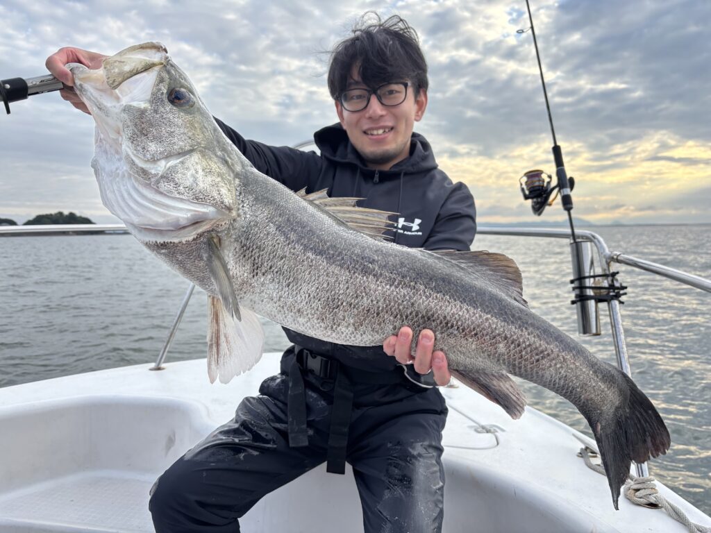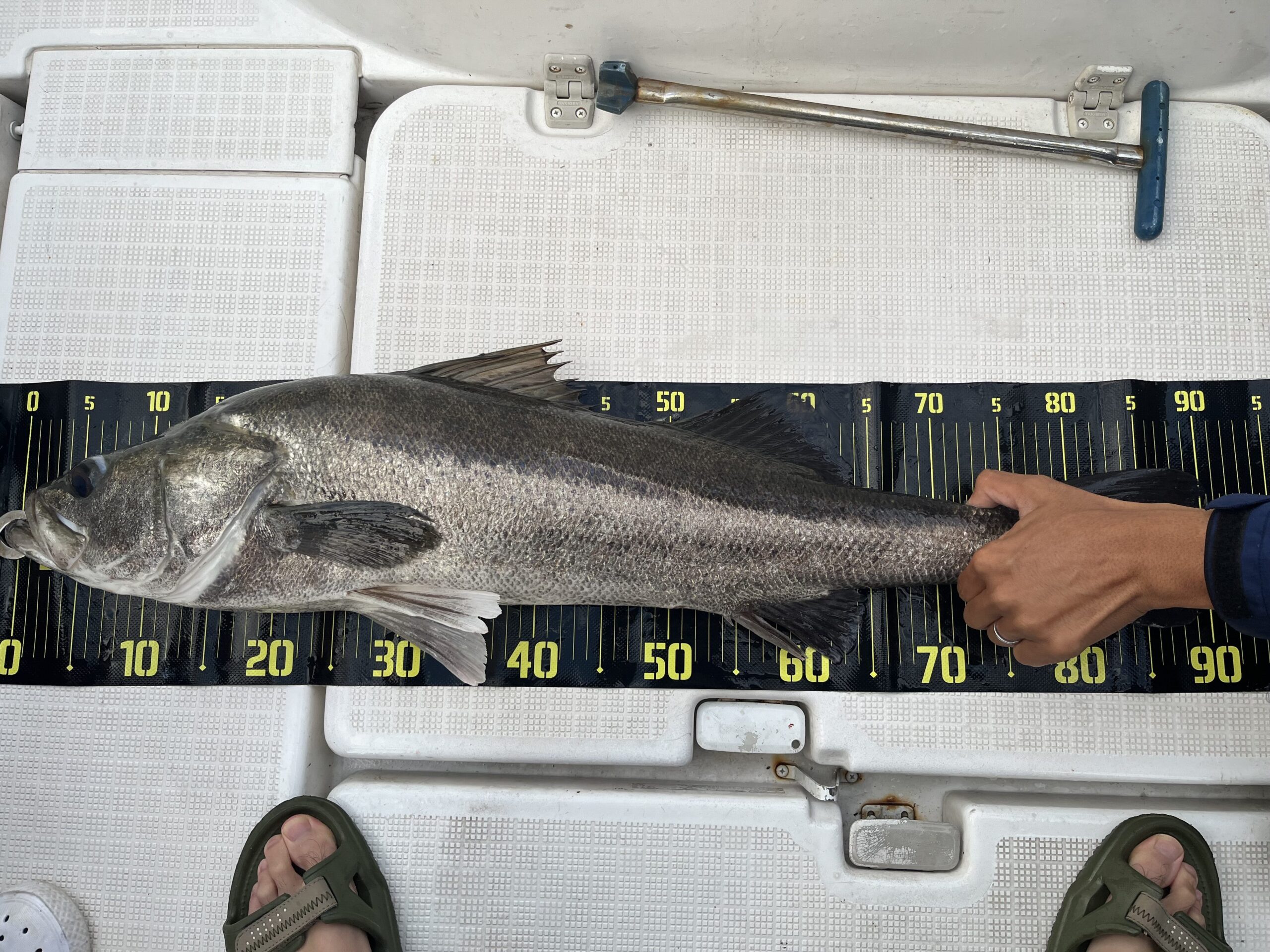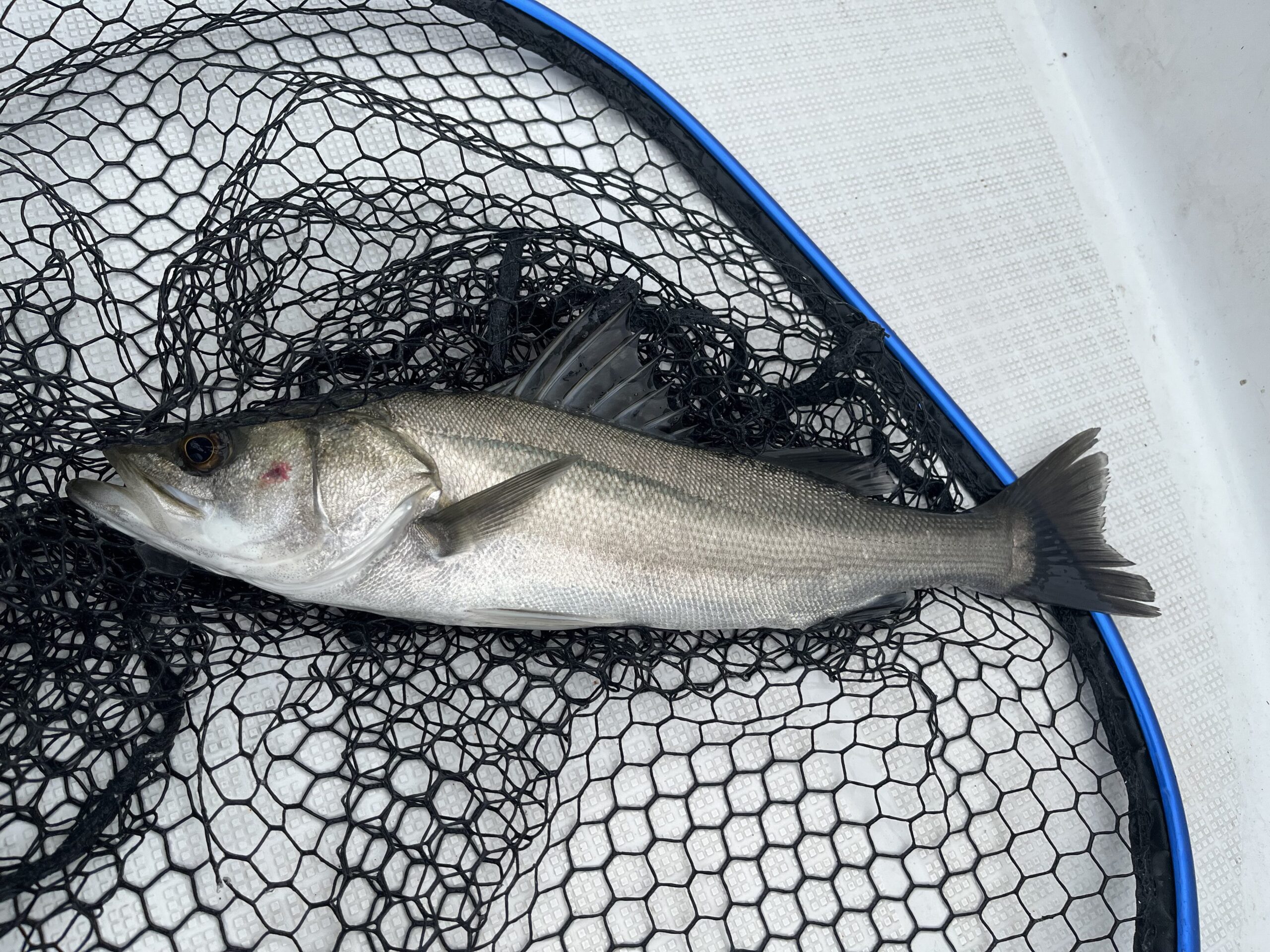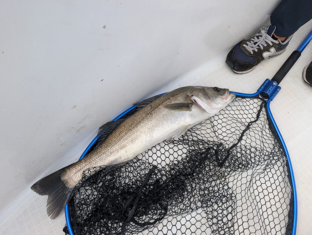 本人曰くたち2人のキャストを見てレンジを変えたそうなのですが、2投目で見事シーバスを釣り上げました!