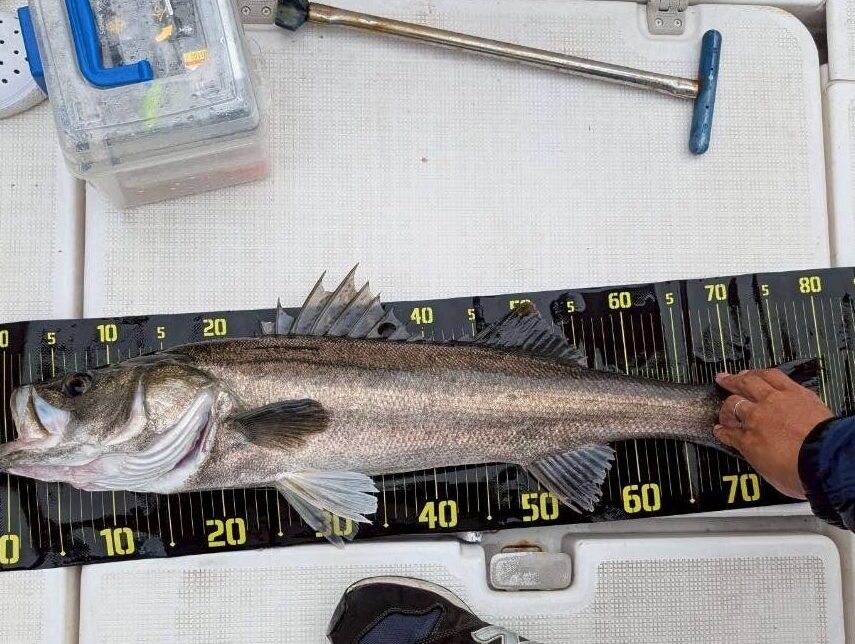 80cmのシーバスが釣れました!指示通りに巻いただけで釣れてしまったので、喜びよりも衝撃が勝ってしまい放心状態になってしまいました。
