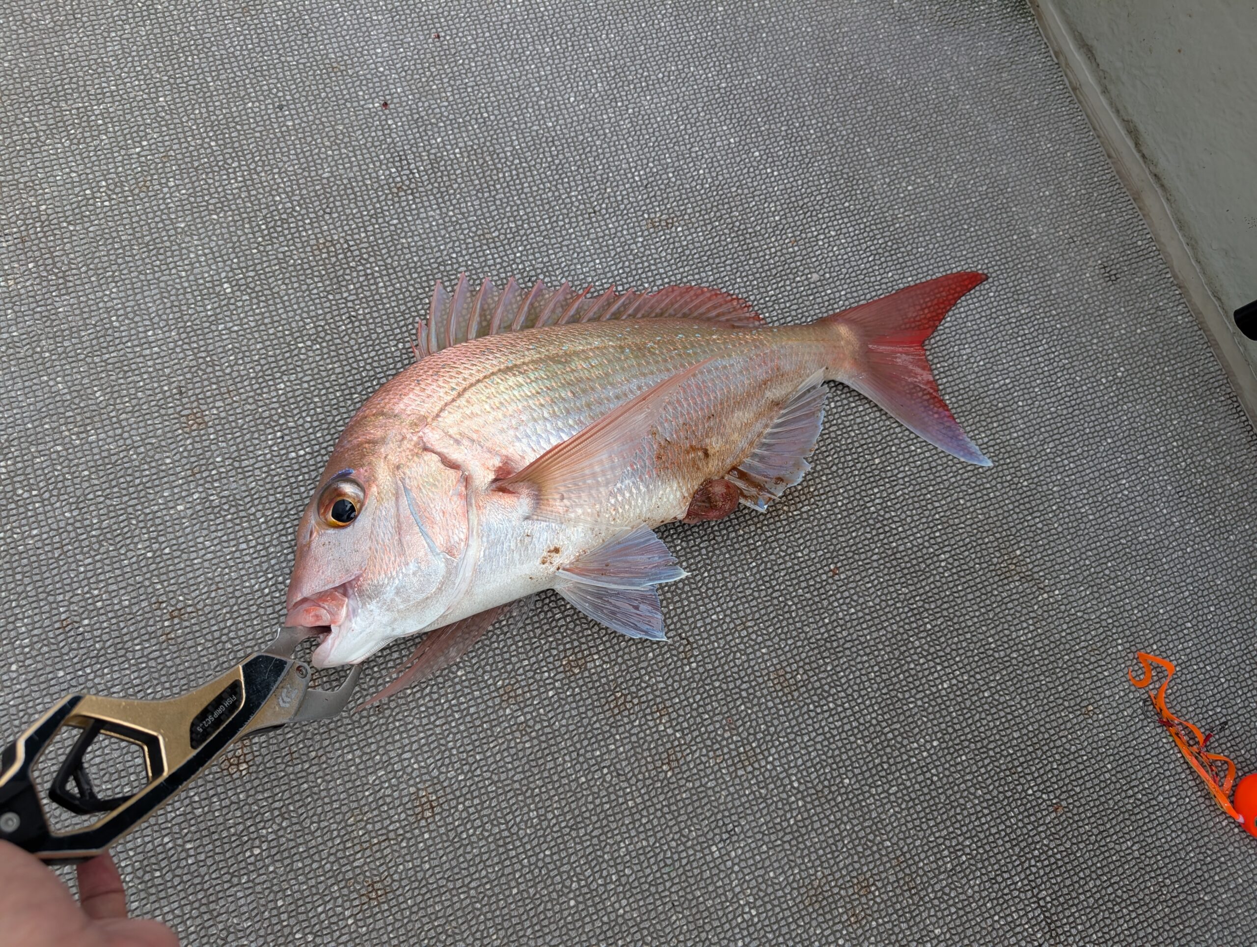 その後はジギングには反応がありませんでしたが、船中でポツポツとタイラバでマダイやアオハタ、キジハタなどが上がり始めました。