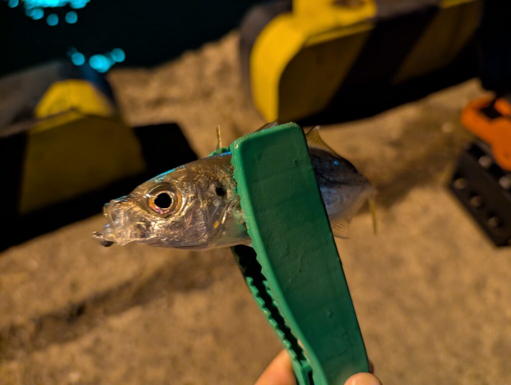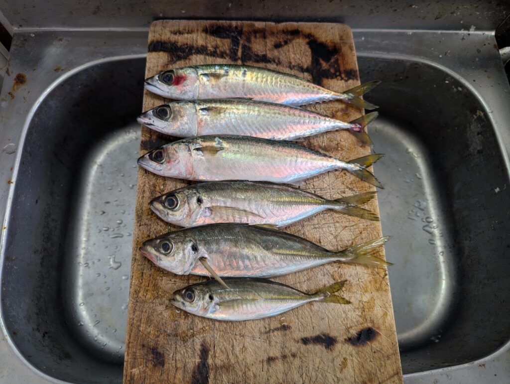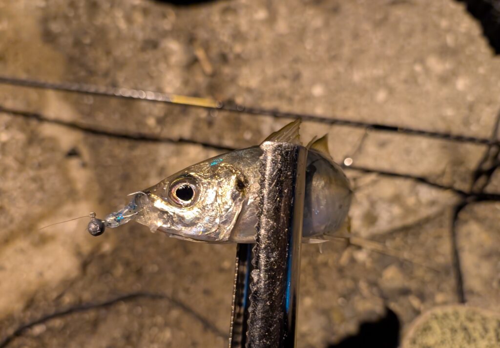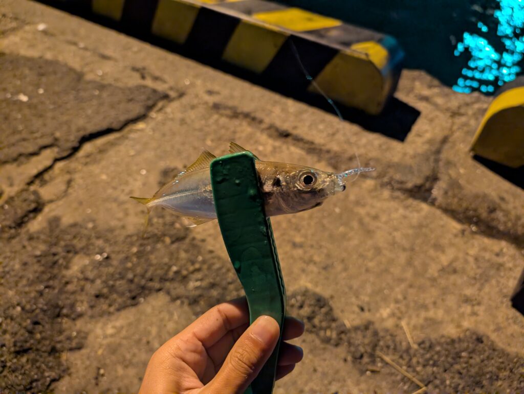 アジが釣れてくれましたがサイズは小さいですね。