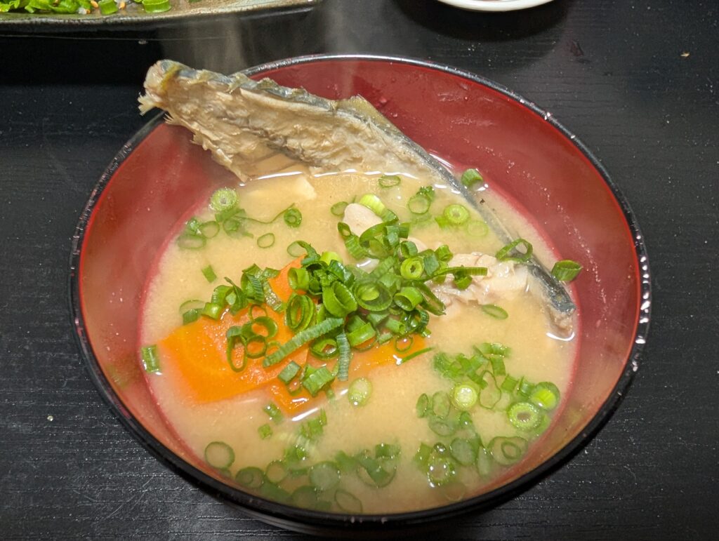 マサバは天麩羅と味噌汁に。